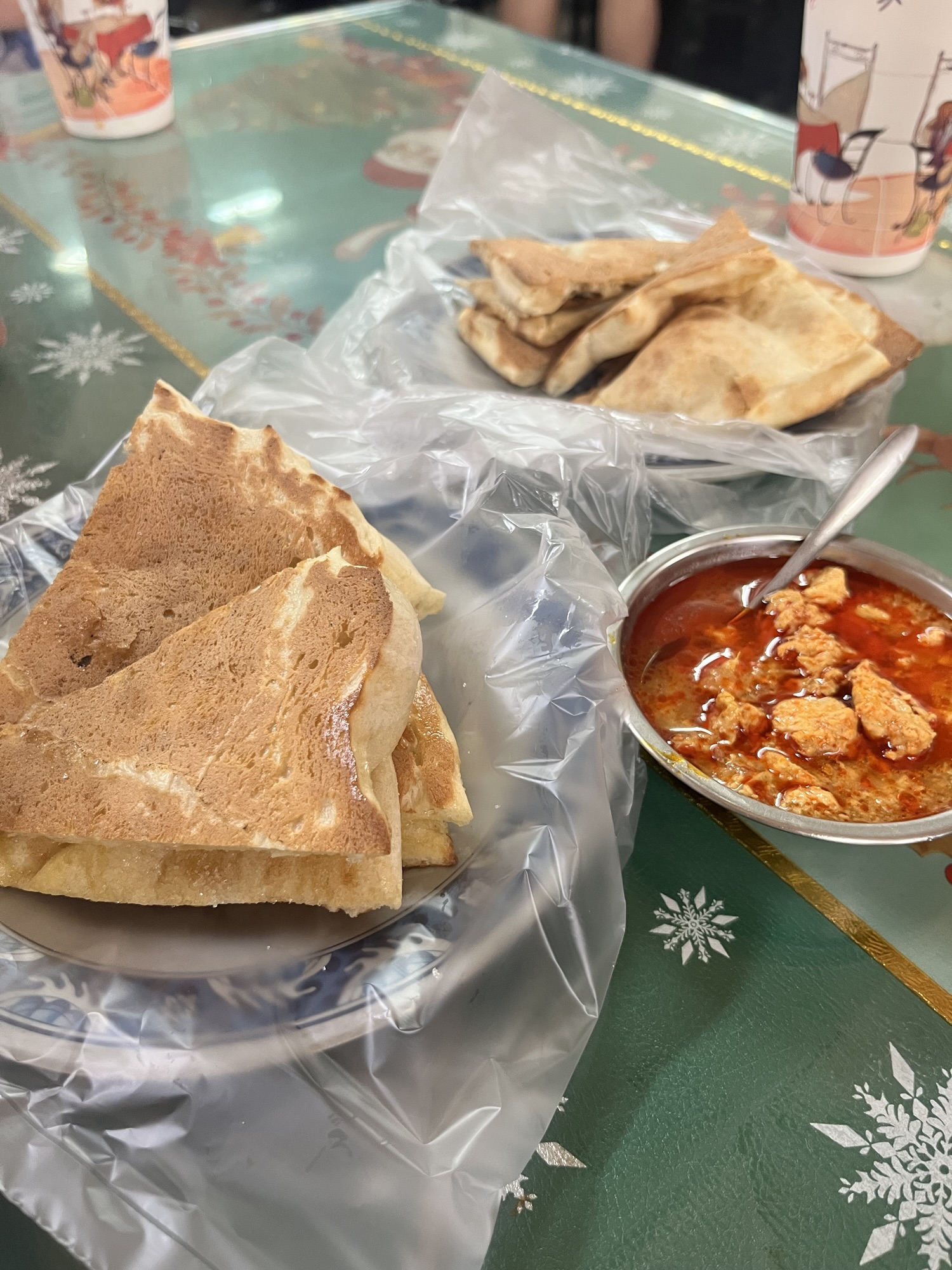 老實說可能期待及排隊等待的時間,疊加了我的期望🫠,覺得咖喱很水、幾乎沒有印度咖喱的香料味,配烤餅吃很平淡無味,可能老闆有調整配方迎合台灣人口味。而奶油的甜味烤餅則是吃不完外帶回家,建議熱熱吃比較好吃喔!